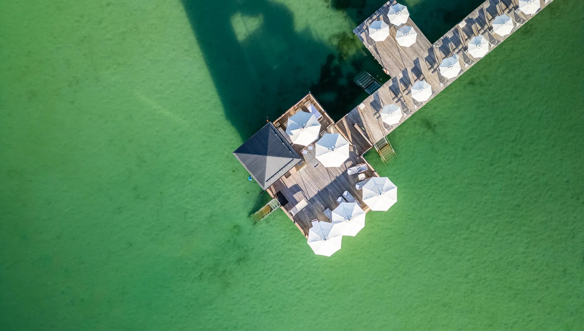 Ein Schirm und zwei Liegen sind pro Zimmer inklusive.