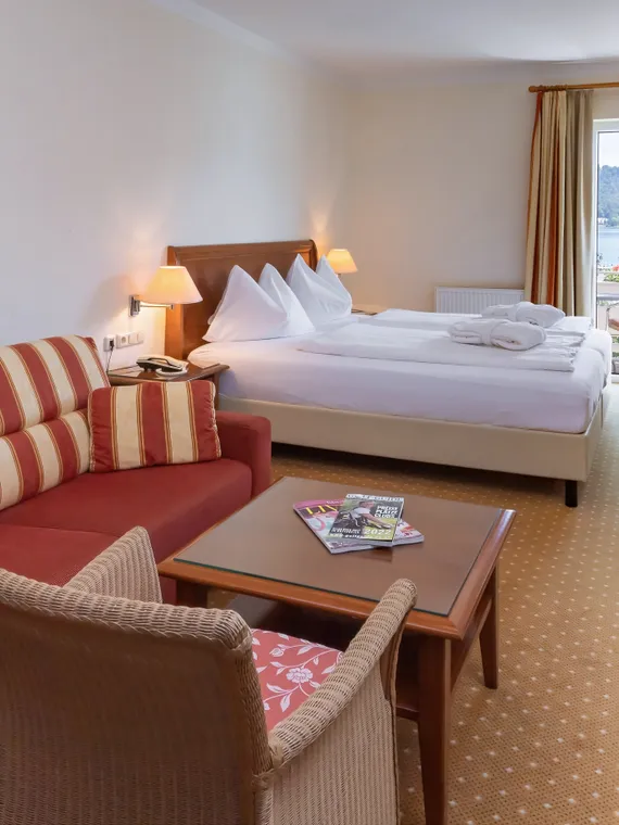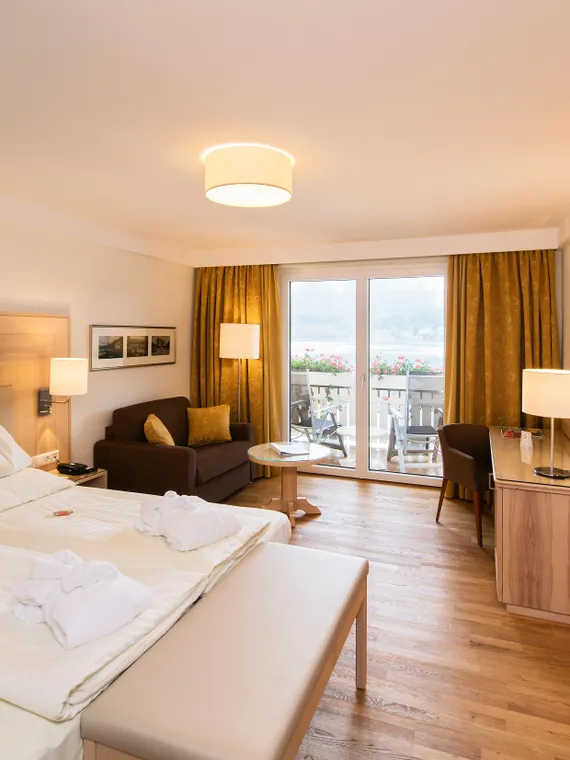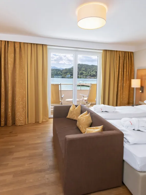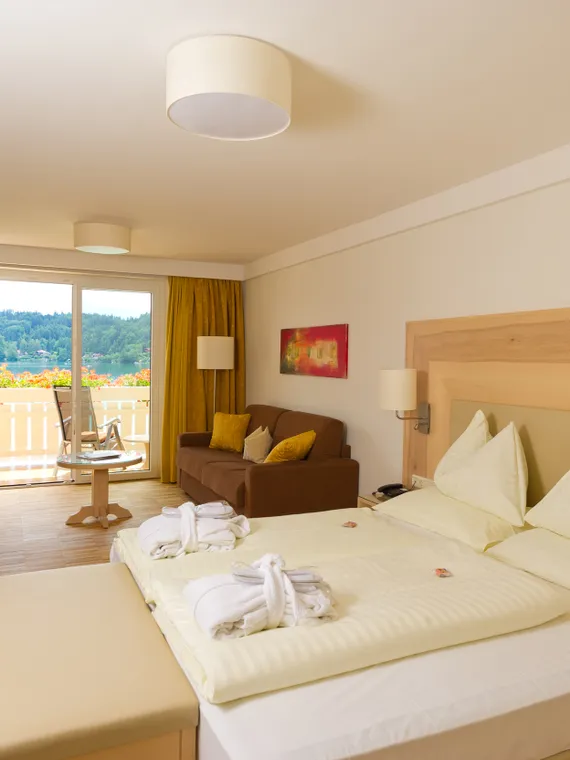 Wir tragen die Sonne nicht nur im Namen unseres Hotels, wir lassen sie auch in jeden unserer Räume! Unter 90 Zimmern und 6 Appartements haben Sie die Auswahl. Was Sie allerdings immer bei uns buchen: großzügig geschnittene Zimmer, freundlich und hell eingerichtet. Auf Wunsch und nach Verfügbarkeit stellen wir Ihnen gerne ein Doppelzimmer mit Verbindungstüre zur Verfügung. Alle unserer Räume verfügen über einen Balkon und weil es kaum eine schönere Aussicht gibt, dürfen Sie sich auf einen traumhaften Blick auf den Klopeiner See freuen.