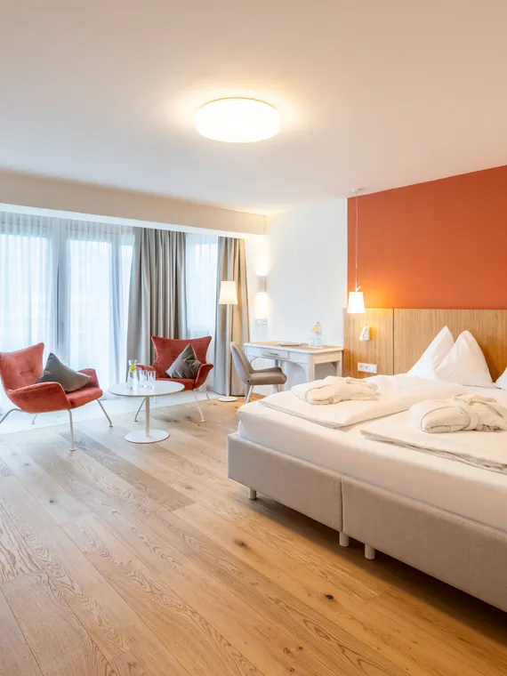 In einem unserer sechs Appartements - speziell für Ihren Familienurlaub konzipiert - haben Eltern und Kinder ihr eigenes Reich. Ein Eltern- sowie ein eigenes Kinderzimmer gewährt jedem Familienmitglied seinen Platz. Seit 2023 bieten wir mit unseren Appartements Morgenrot noch mehr Platz für sonniges Urlaubsfeeling. Lassen Sie sich von unserem Reservierungsteam individuell beraten.