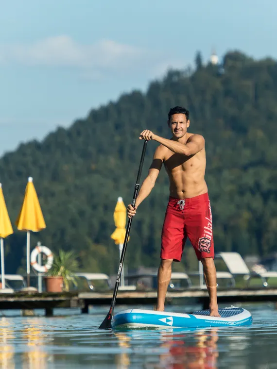 Don’t feel like simply sitting back and loafing around on holiday? Neither do we. Which is why Lake Klopein in Carinthia is at its most beautiful when you get active. Don’t worry: The impressive landscape and glistening lake automatically draw you outdoors. Trendy sports or classic activities? We have both. Fun factor? Very high!