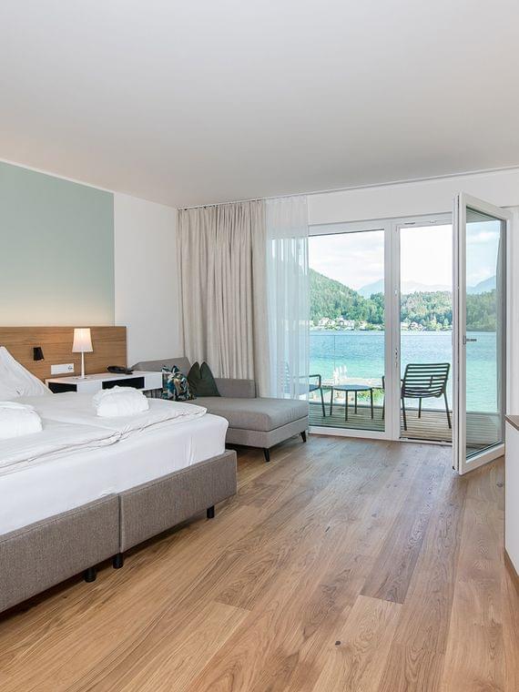 Not only have we captured the sun in the name of our hotel, we also let it into every one of our rooms! Choose from among 90 rooms and 6 apartments. One thing is guaranteed when you book with us: generously sized rooms furnished in a bright and friendly style. On request and subject to availability, we will gladly provide you with a double room with a connecting door. All our rooms feature a balcony and since it is hard to imagine a more beautiful view, every single one of them offers a fantastic view of Lake Klopein.